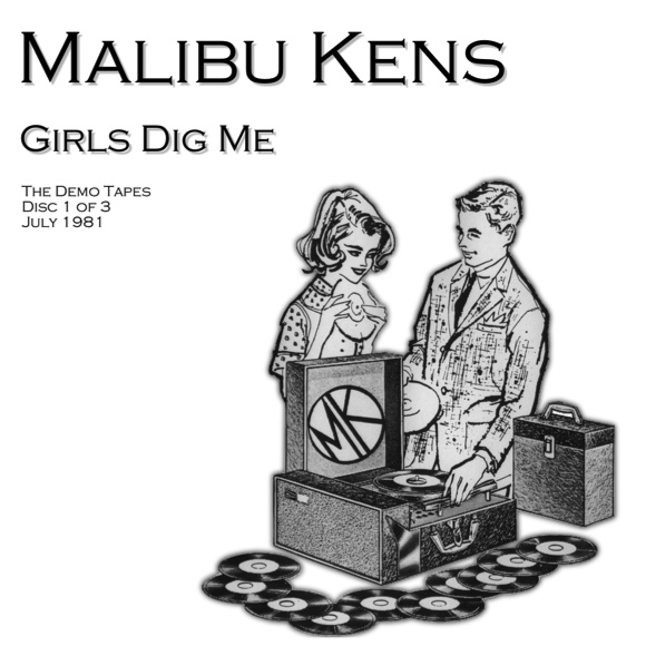 This recording, Girls Dig Me, is the Malibu Kens first demo tape, recorded in July 1981. All tracks were recorded in one ten hour session. We borrowed a Teac 4-track reel-to-reel, mixing board, and some microphones to make the recording. We set up our equipment in Jim Algie's basement and got Myron Nebozuk to operate the recorder and mixer while we played. Drums, bass, and guitar were recorded in one pass (in stereo) for all songs. We then used the remaining two tracks to record vocals, additional guitars and percussion. Each of the four tracks had multiple instruments recorded on them which meant we had to get the balance correct at the recording stage. This was especially difficult to achieve since we lacked essential equipment such as compressors, limiters and proper microphone preamps. The final mix required a lot of manual level adjustments (riding the faders), particularly for the vocal tracks. Mixing was accomplished the following day, in another lengthy session, and resulted in a cassette master containing 12 tracks of mayhem. Tracks that we were very proud of at the time.