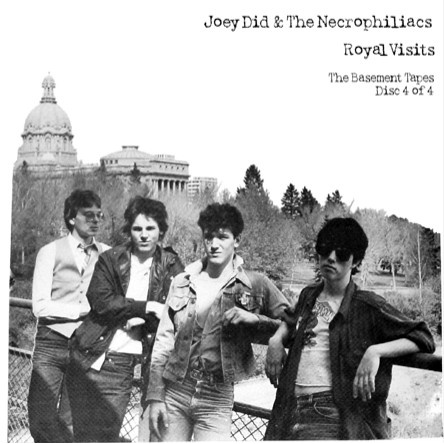 During the Joey Did era, I made an effort to record many of our practice sessions, and even a few gigs. We never had a proper P.A. system at our band practices to allow us to hear the vocals. At our first practice it occurred to me that we could use a cassette tape deck as a microphone pre-amp. Plugging the deck output into a stereo system, or a guitar amp, allowed us to then hear the vocals. By putting the deck into record mode, I was able to record our practices onto cassette tapes. Following each session, I would then listen to the tapes and make an archival copy of whatever I considered to be an amusing incident or a well played song. I managed to collect almost four hours of material, most of it during the first 12 months of our career. These tapes become known as "the basement tapes" since most of the material had been recorded in Ed's basement or my basement.