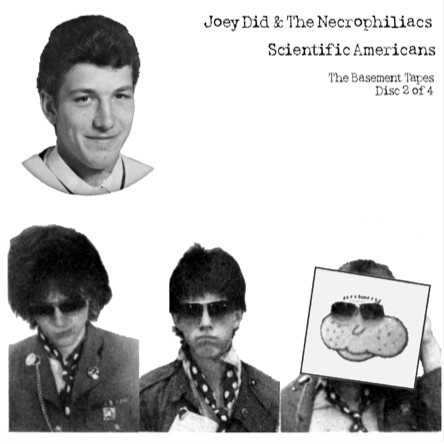 During the Joey Did era, I made an effort to record many of our practice sessions, and even a few gigs. We never had a proper P.A. system at our band practices to allow us to hear the vocals. At our first practice it occurred to me that we could use a cassette tape deck as a microphone pre-amp. Plugging the deck output into a stereo system, or a guitar amp, allowed us to then hear the vocals. By putting the deck into record mode, I was able to record our practices onto cassette tapes. Following each session, I would then listen to the tapes and make an archival copy of whatever I considered to be an amusing incident or a well played song. I managed to collect almost four hours of material, most of it during the first 12 months of our career. These tapes become known as "the basement tapes" since most of the material had been recorded in Ed's basement or my basement.