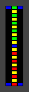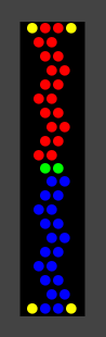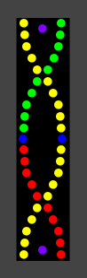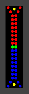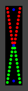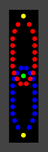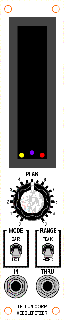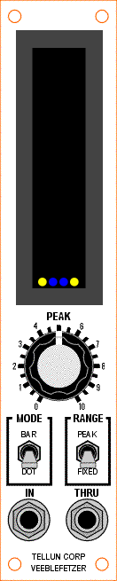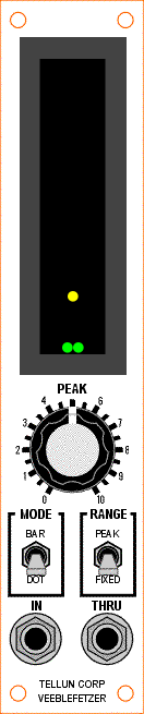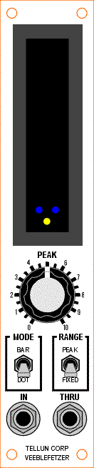 Get creative with your LED display. LEDs are available in a variety of colours, shapes, and sizes. There's no reason to limit your synth to a (boring) straight line bar graph. Here are some examples I came up with. Click on each example to see a simulation of what you would see on the LED display if monitoring a low frequency ramp wave (-5V to +5V) with the controls set as shown on the previous page.