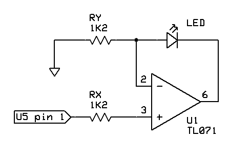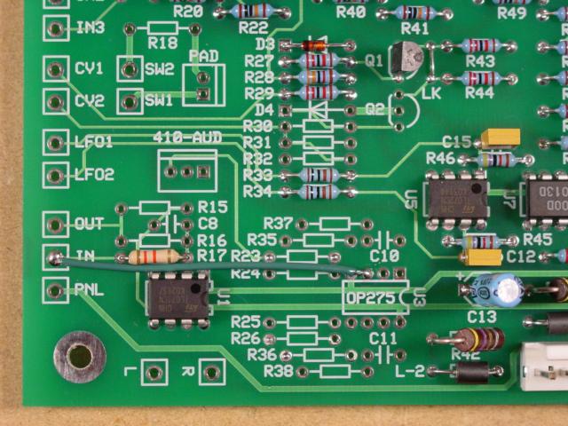 - There is enough space around U1 to recreate the exact same circuit used to drive the LED on the MOTM-320. I tried both circuits and was happy with the simpler one presented here.